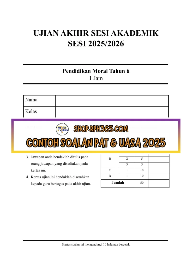UASA 2025 Pend Moral SK Tahun 6 by Ms Lilybee