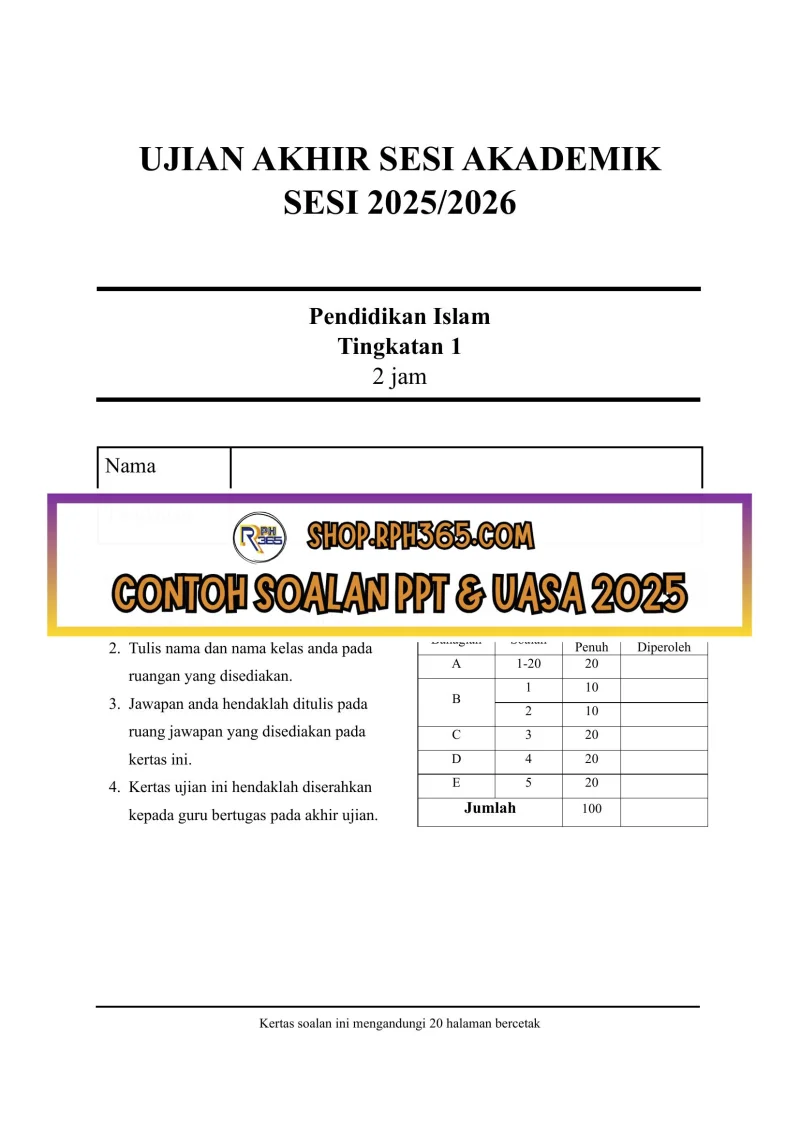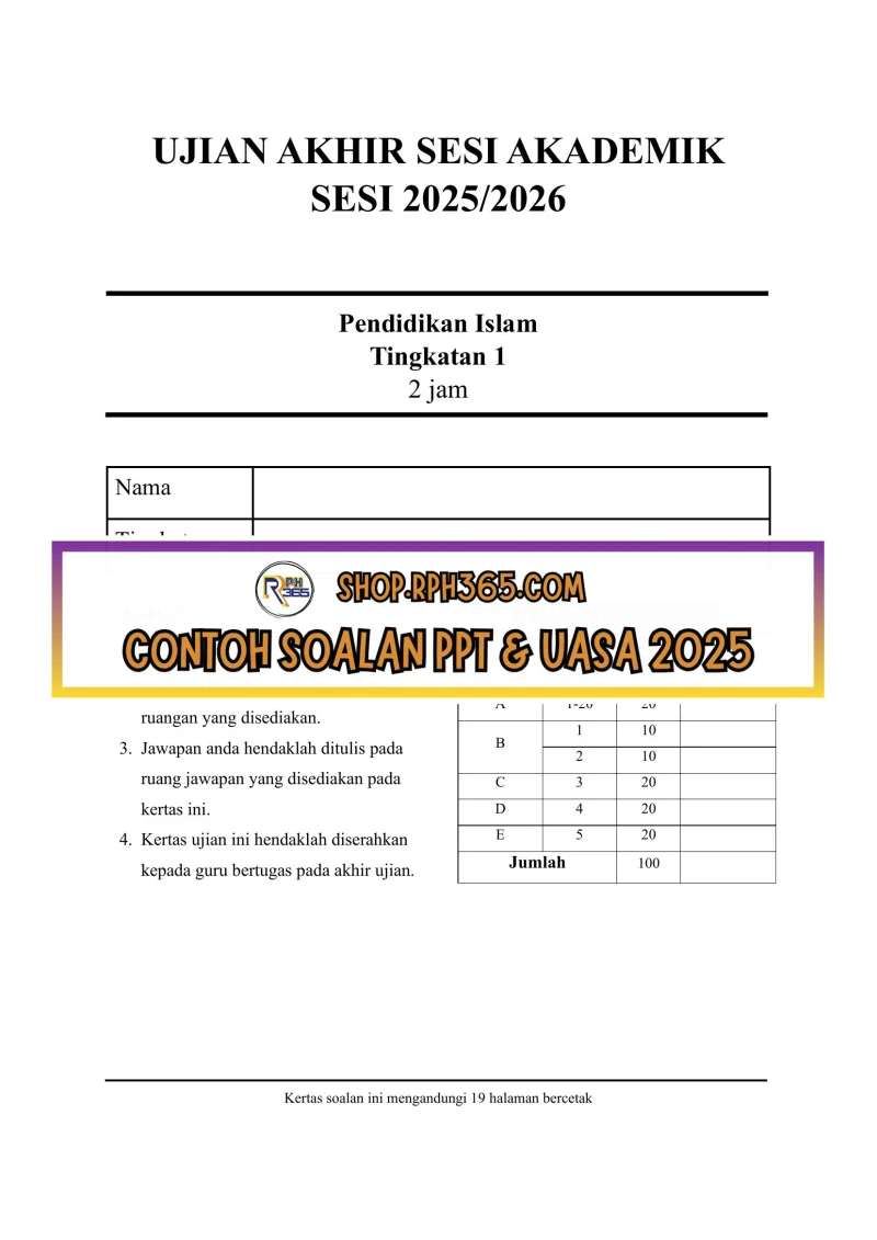 UASA 2025 Pendidikan Islam SMK Ting 1 by Jiwatenang