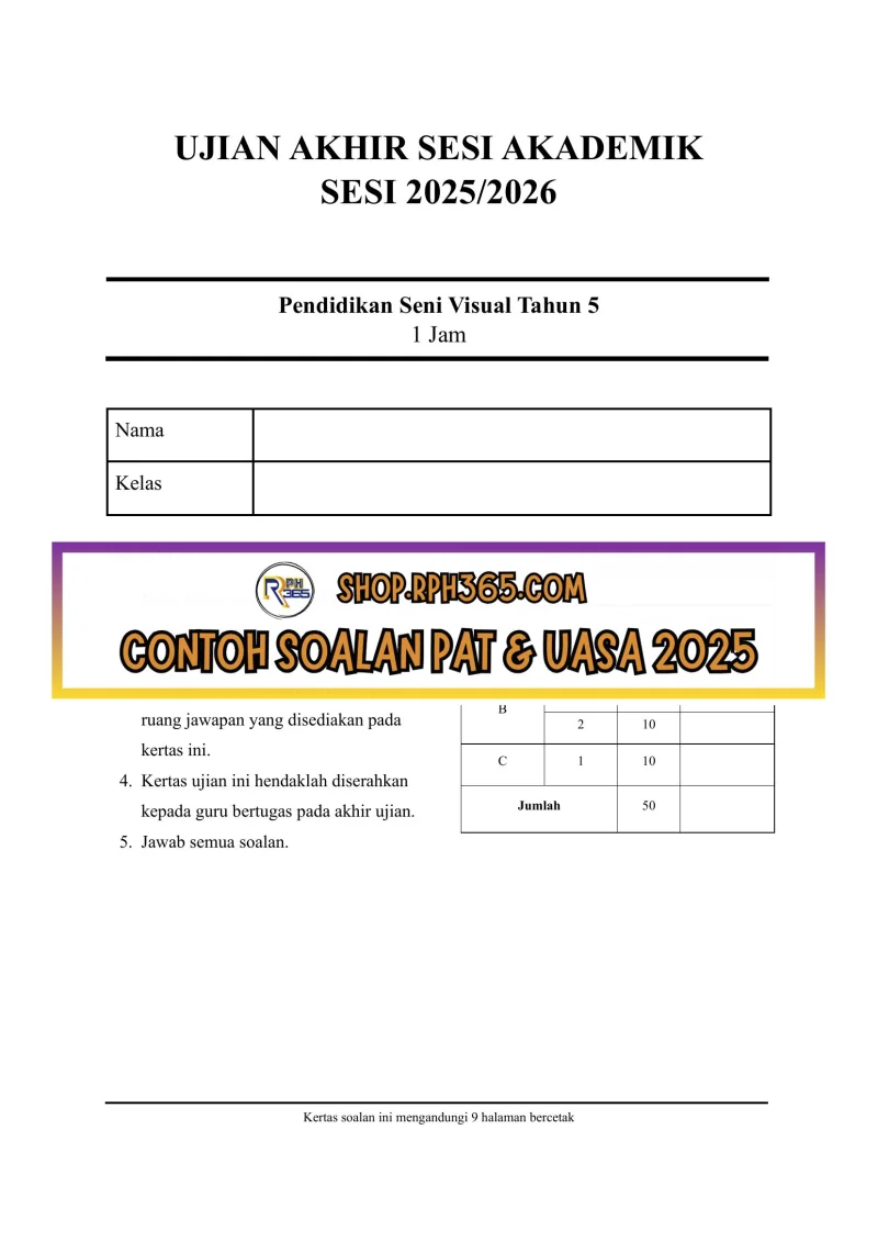 UASA 2025 PSV SK Tahun 5 by Cikgu Karina