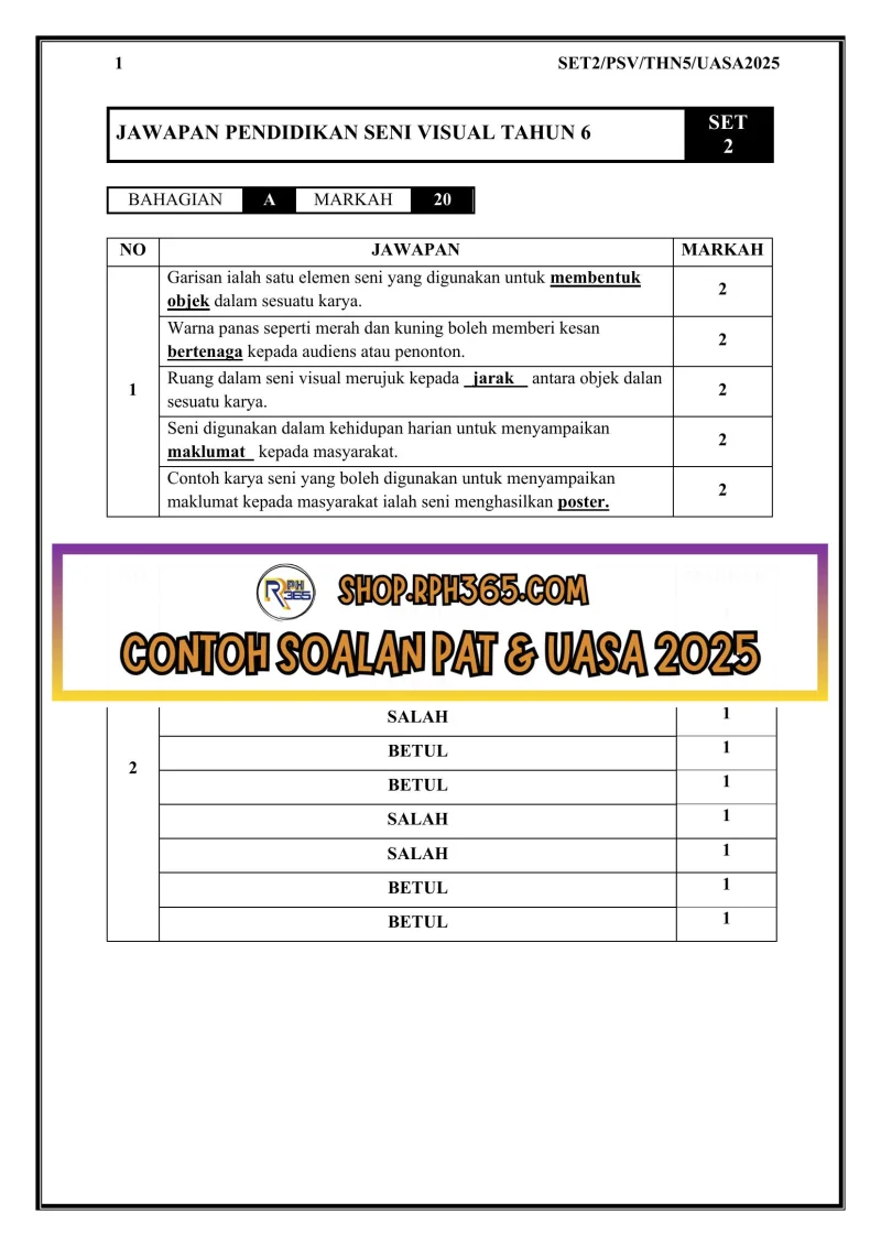 UASA 2025 PSV SK Tahun 6 by Cikgu Karina