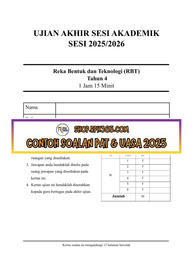 UASA 2025 RBT SK Tahun 4 by Cikgu Zul
