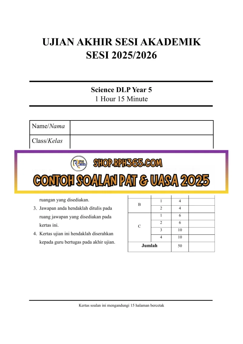 UASA 2025 Sains DLP SK Tahun 5 by Ms Lilybee