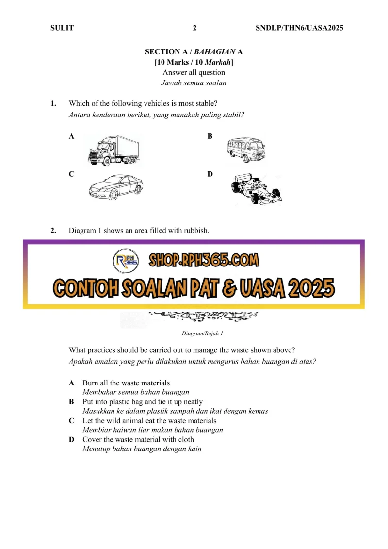 Jumlah Soalan: 2 Set Penulis: Ms Lilybee Pakej: Soalan + Jawapan + JSU Format fail: Words/PDF/Excel Bahasa: English/Bahasa Melayu