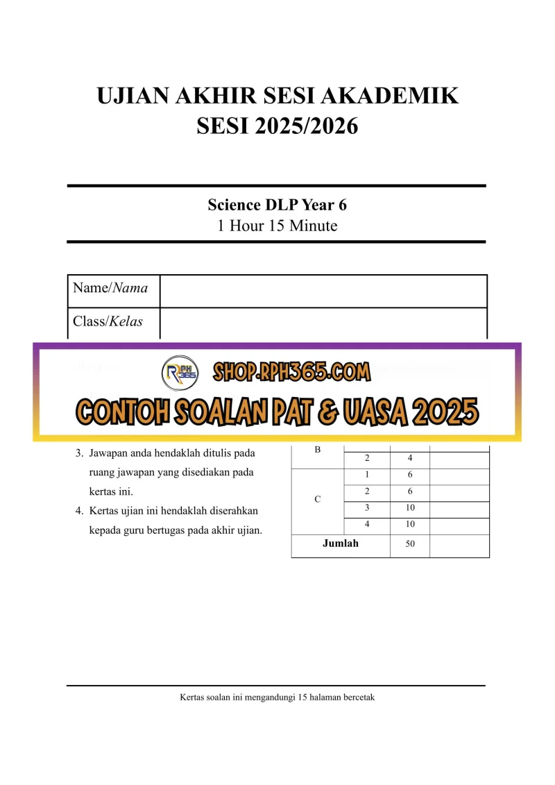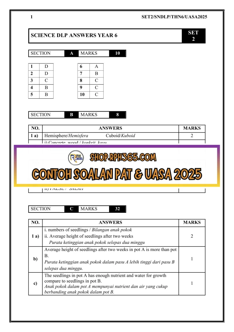 UASA 2025 Sains DLP SK Tahun 6 by Ms Lilybee