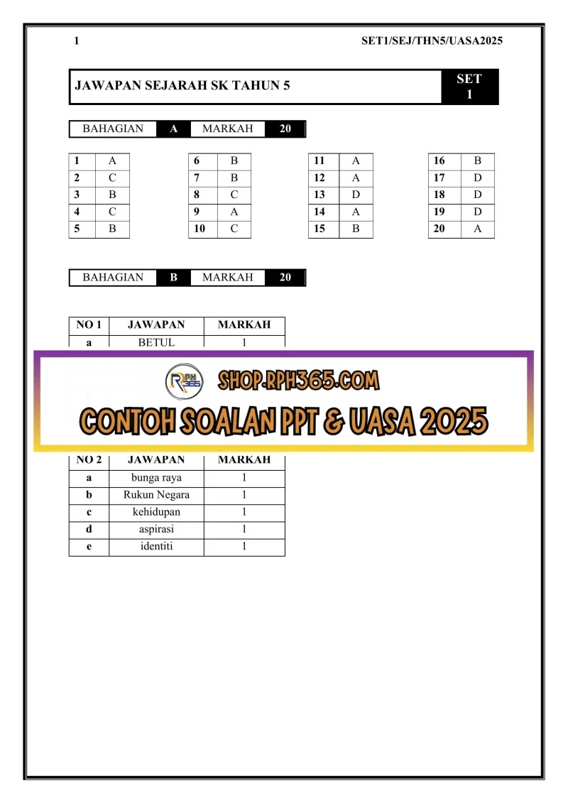 UASA 2025 Sejarah SK Tahun 5 by Cikgu Fahmi