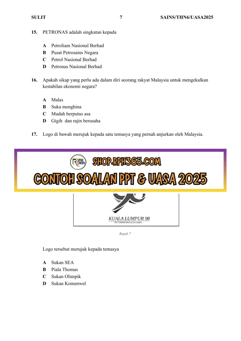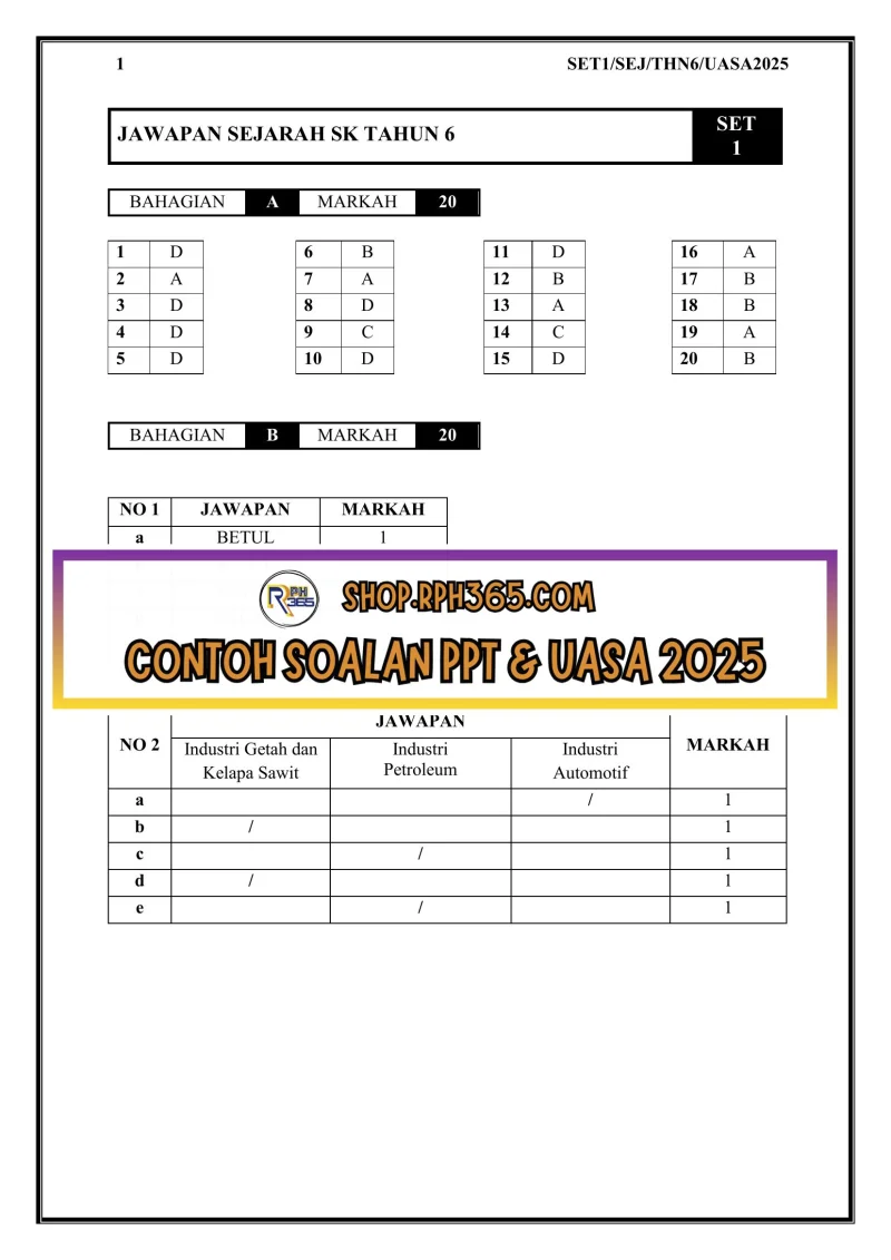 UASA 2025 Sejarah SK Tahun 6 by Cikgu Fahmi