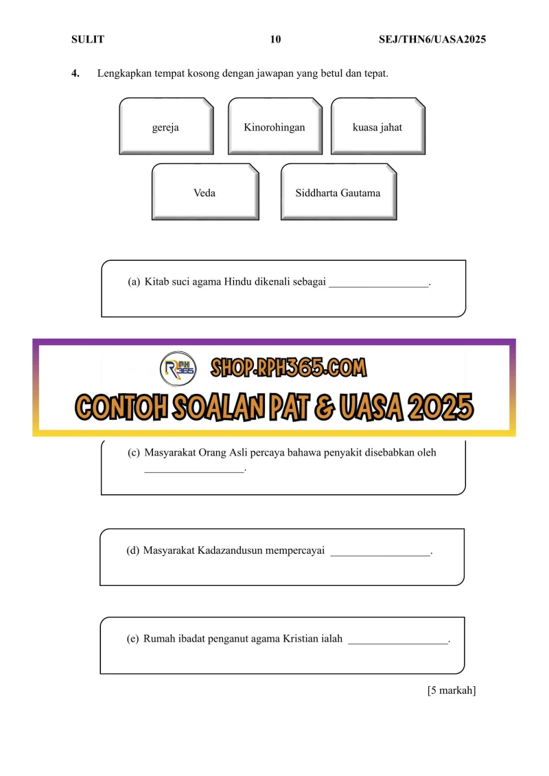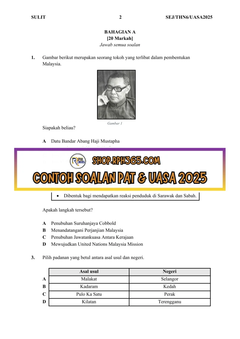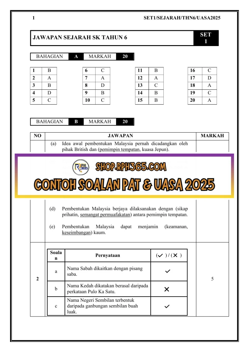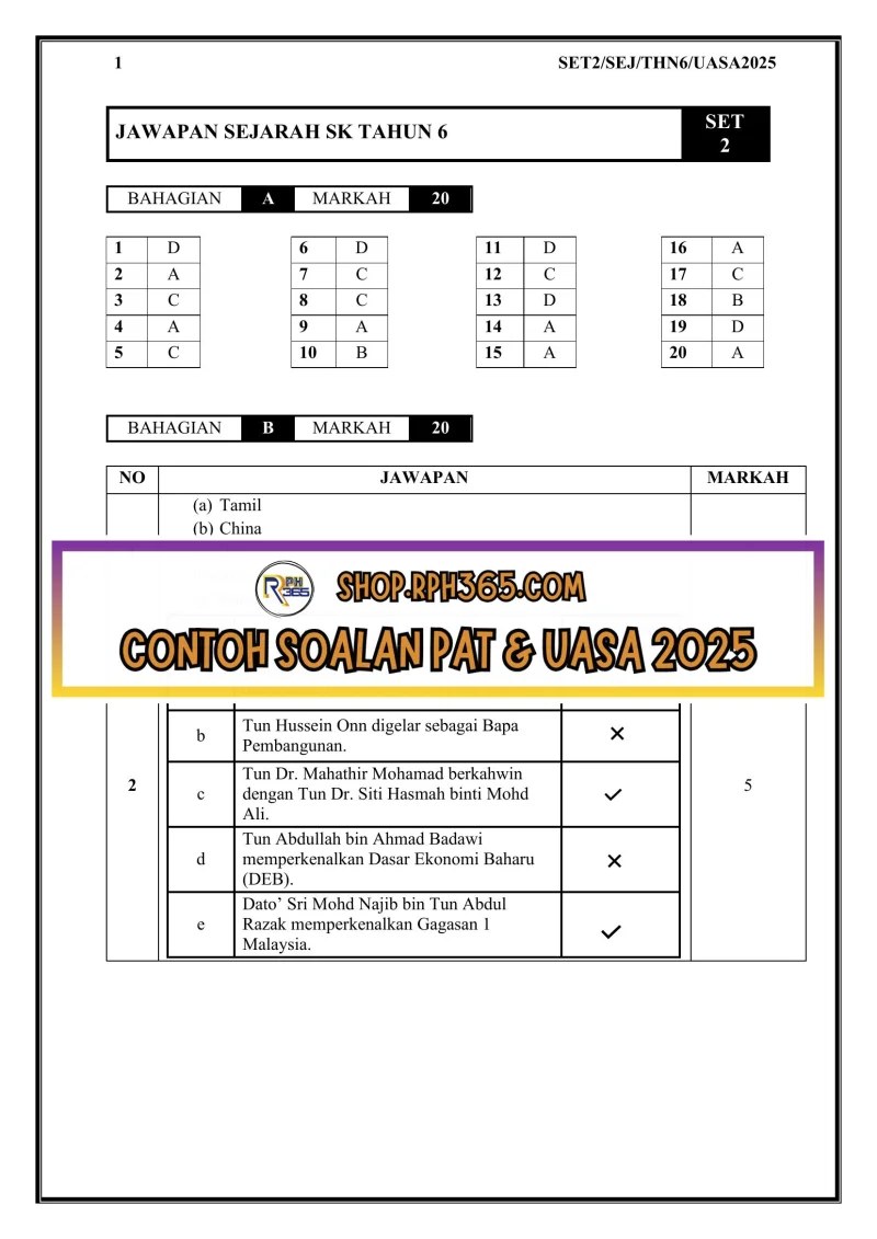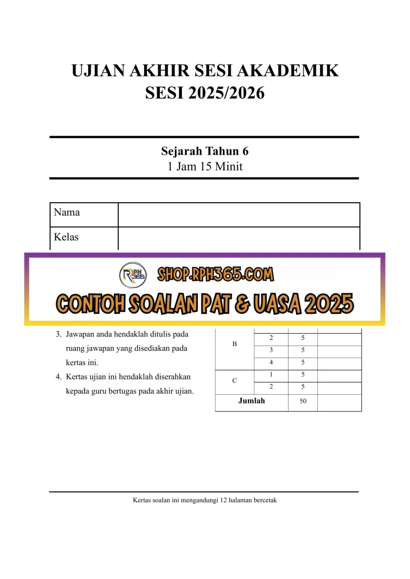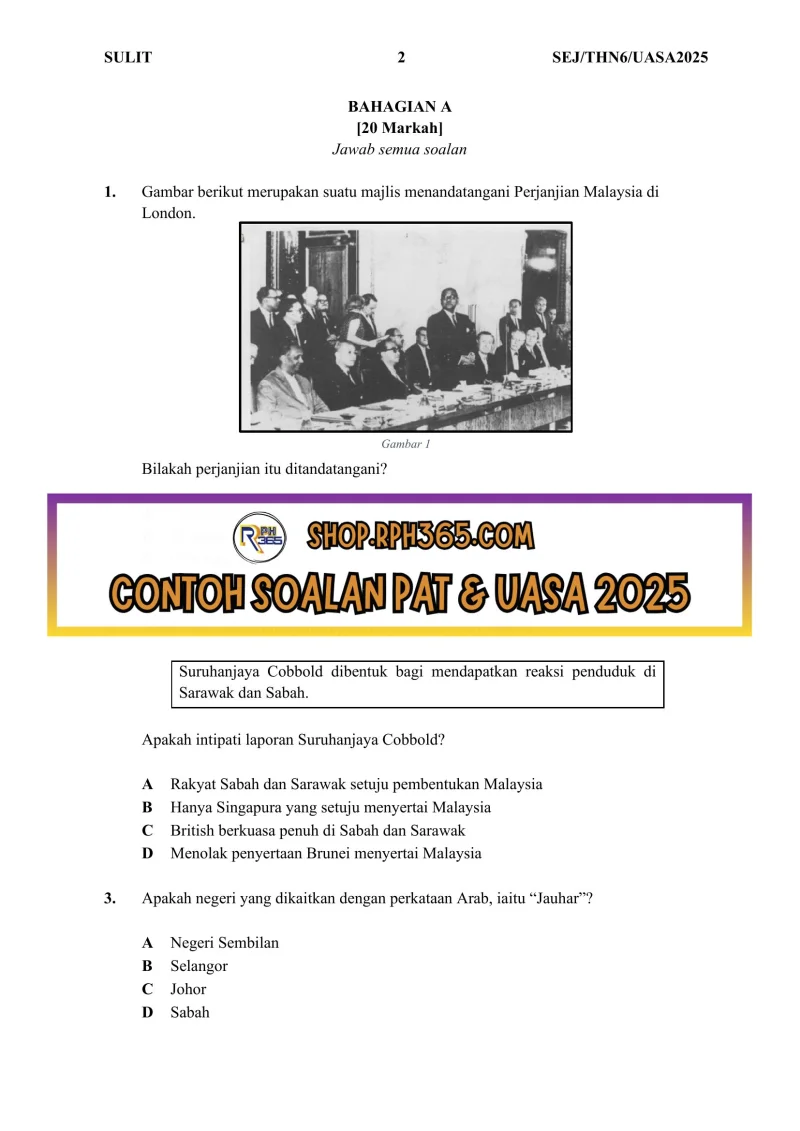 UASA 2025 Sejarah SK Tahun 6 by Cikgu Noy