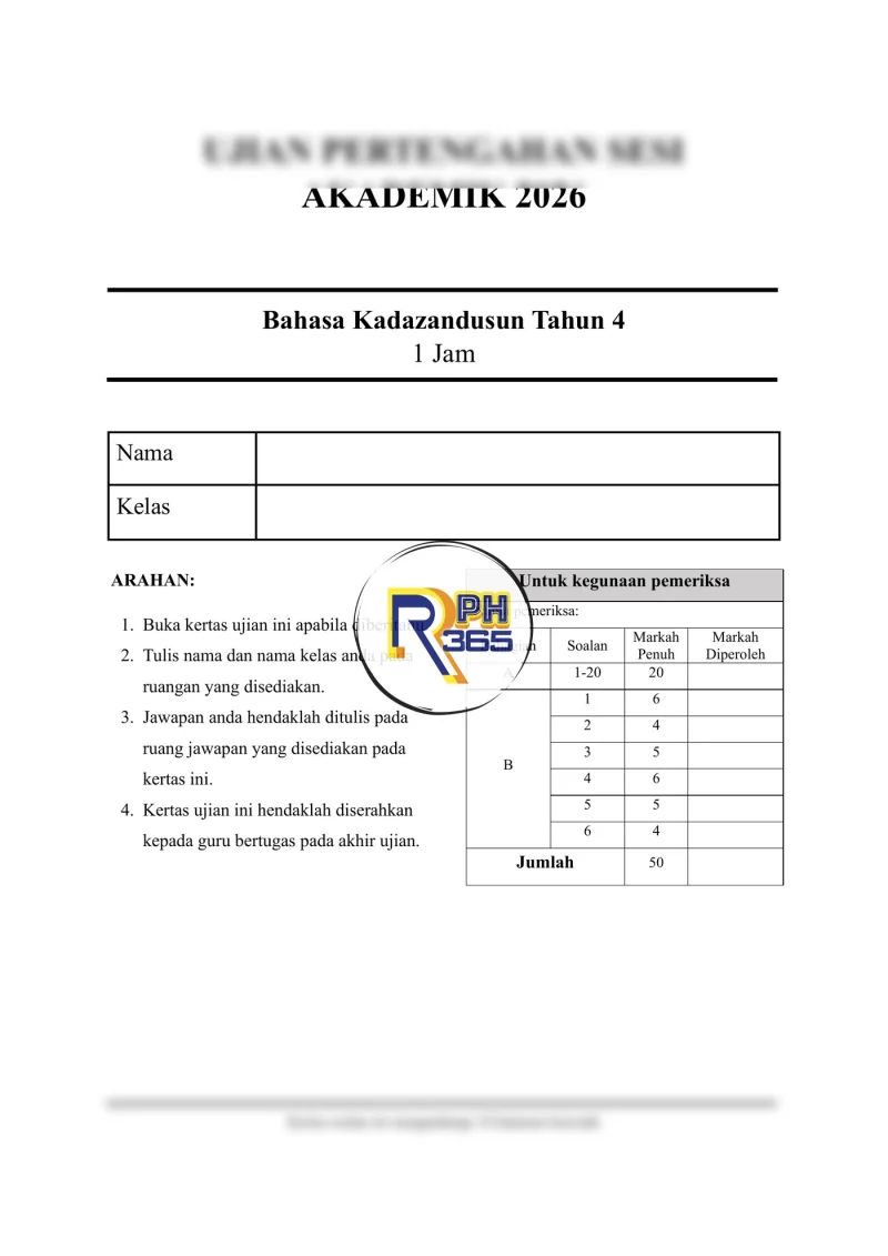 - Jumlah: 26 soalan | 50 markah | 1 jam