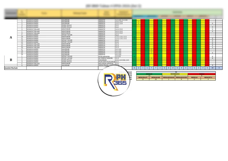 Nisbah aras kesukaran ditetapkan pada 5:3:2 iaitu Rendah 50%, Sederhana 30%, dan Tinggi 20%. Agihan ini membantu guru menyediakan pentaksiran yang seimbang serta memberi peluang kepada murid menguasai soalan pelbagai tahap.