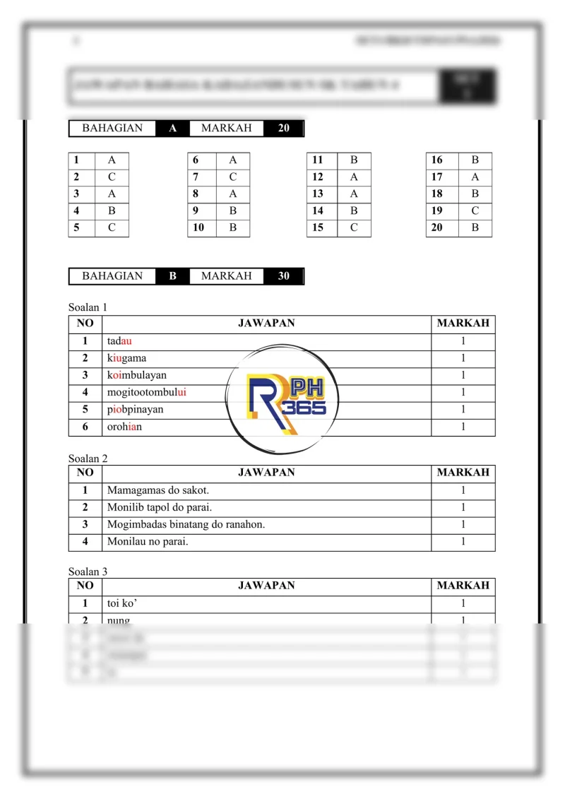UPSA 2026 Bahasa Kadazandusun Tahun 4 by RPH365
