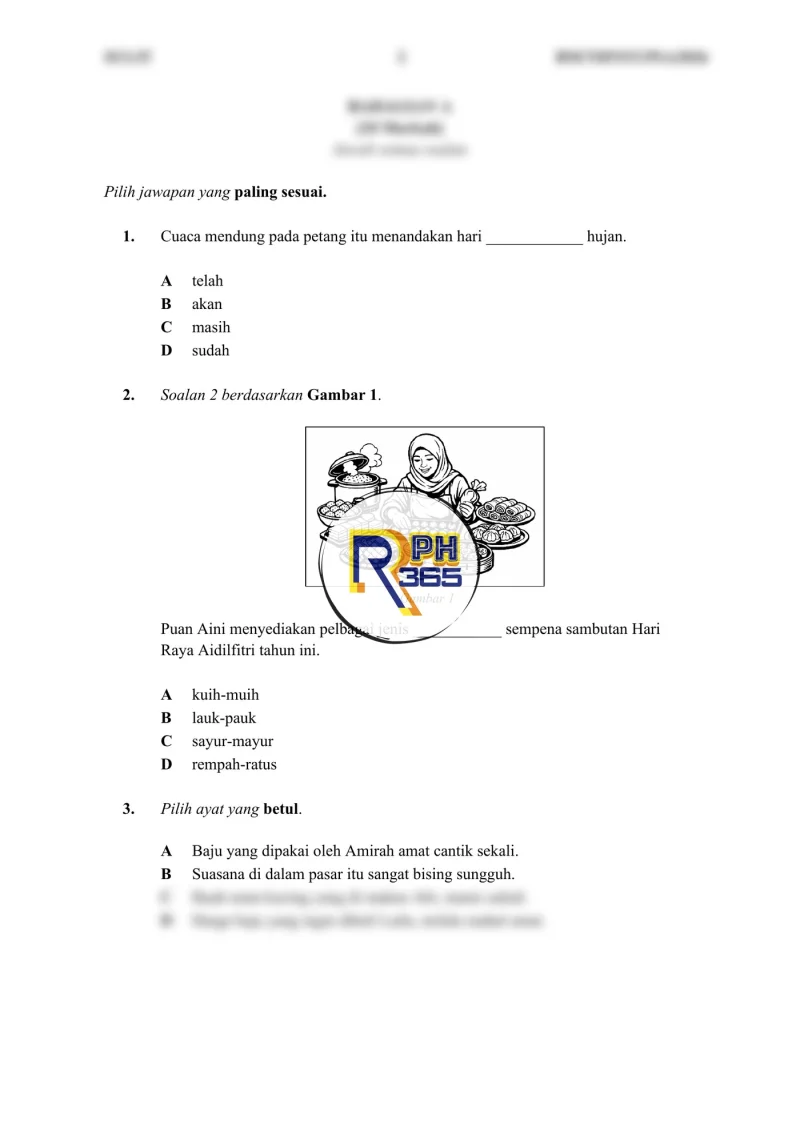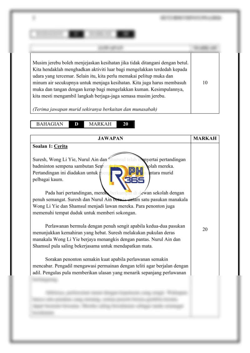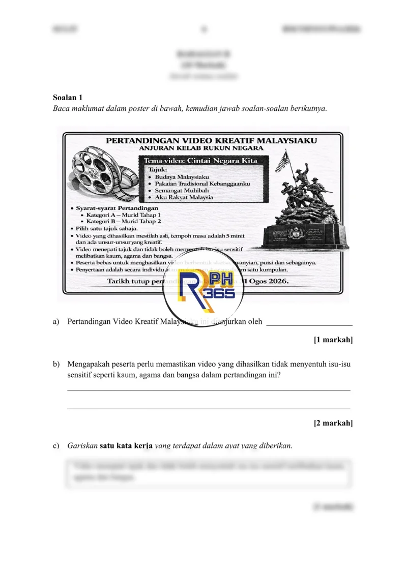 - Bahagian C: 1 soalan penulisan perenggan (10 markah)
