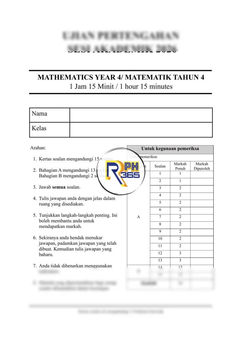 - Jumlah: 15 soalan | 50 markah | 1 jam 15 minit