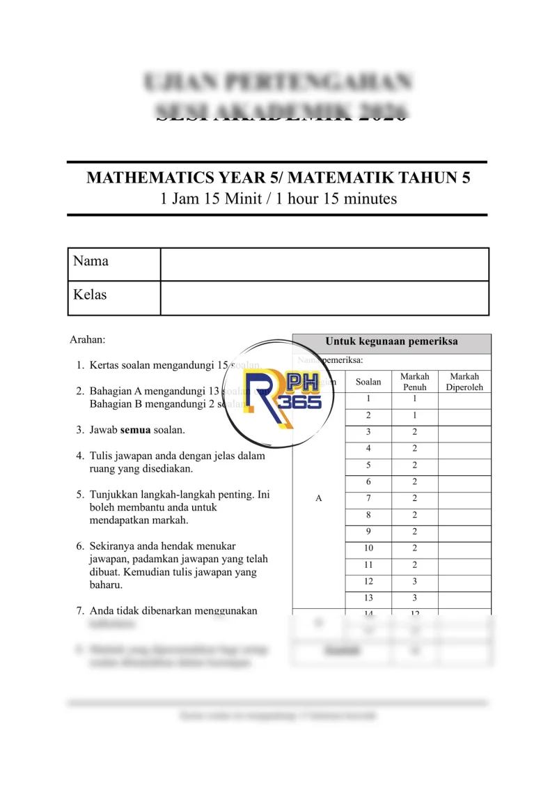 - Jumlah: 15 soalan | 50 markah | 1 jam 15 minit