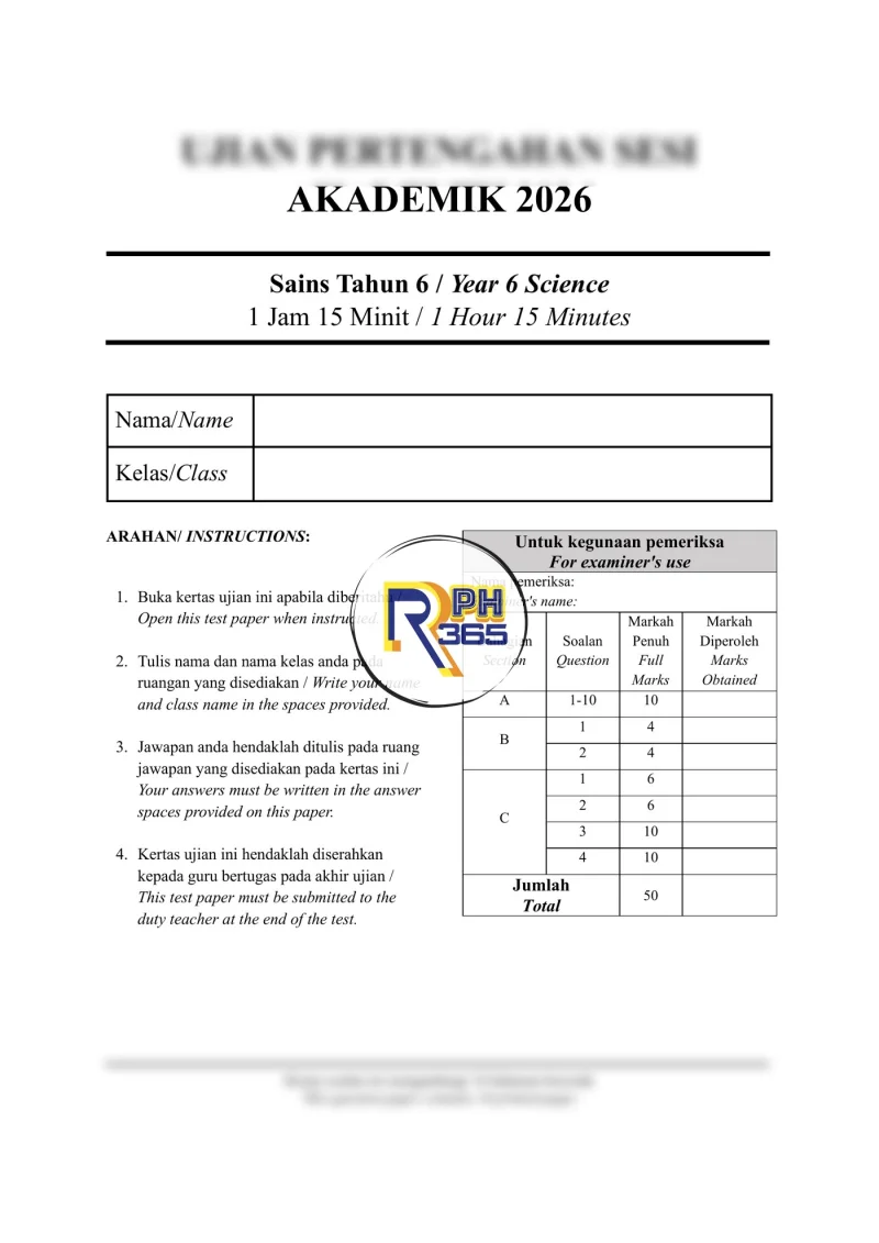 Koleksi 2 set soalan Ujian Pertengahan Sesi Akademik (UPSA) Sains Tahun 6 2026 ini disediakan khusus untuk persediaan pentaksiran pertengahan tahun di sekolah rendah. Setiap set lengkap dengan kertas soalan, skema jawapan, dan JSU dalam format yang boleh diedit mengikut keperluan guru. Bahan ini sesuai digunakan sebagai latihan berfokus, pengukuhan topik, dan rujukan penyediaan item berasaskan KSSR.