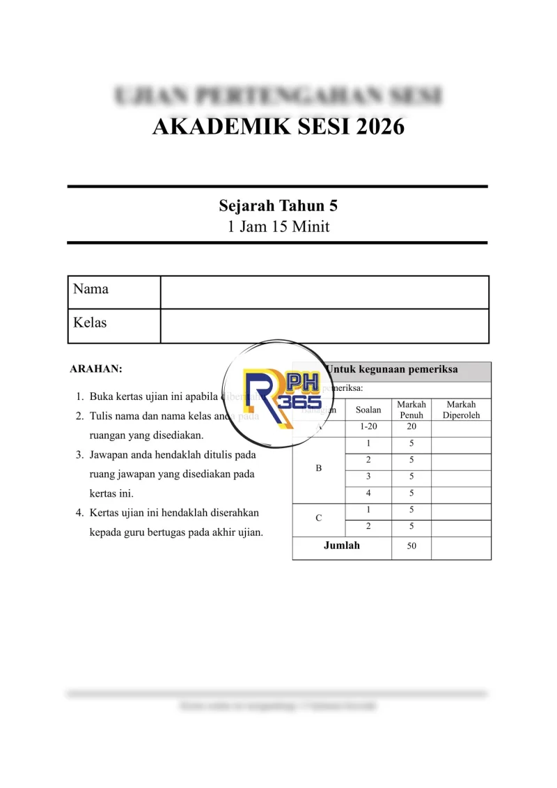 UPSA 2026 Sejarah Tahun 5 by RPH365